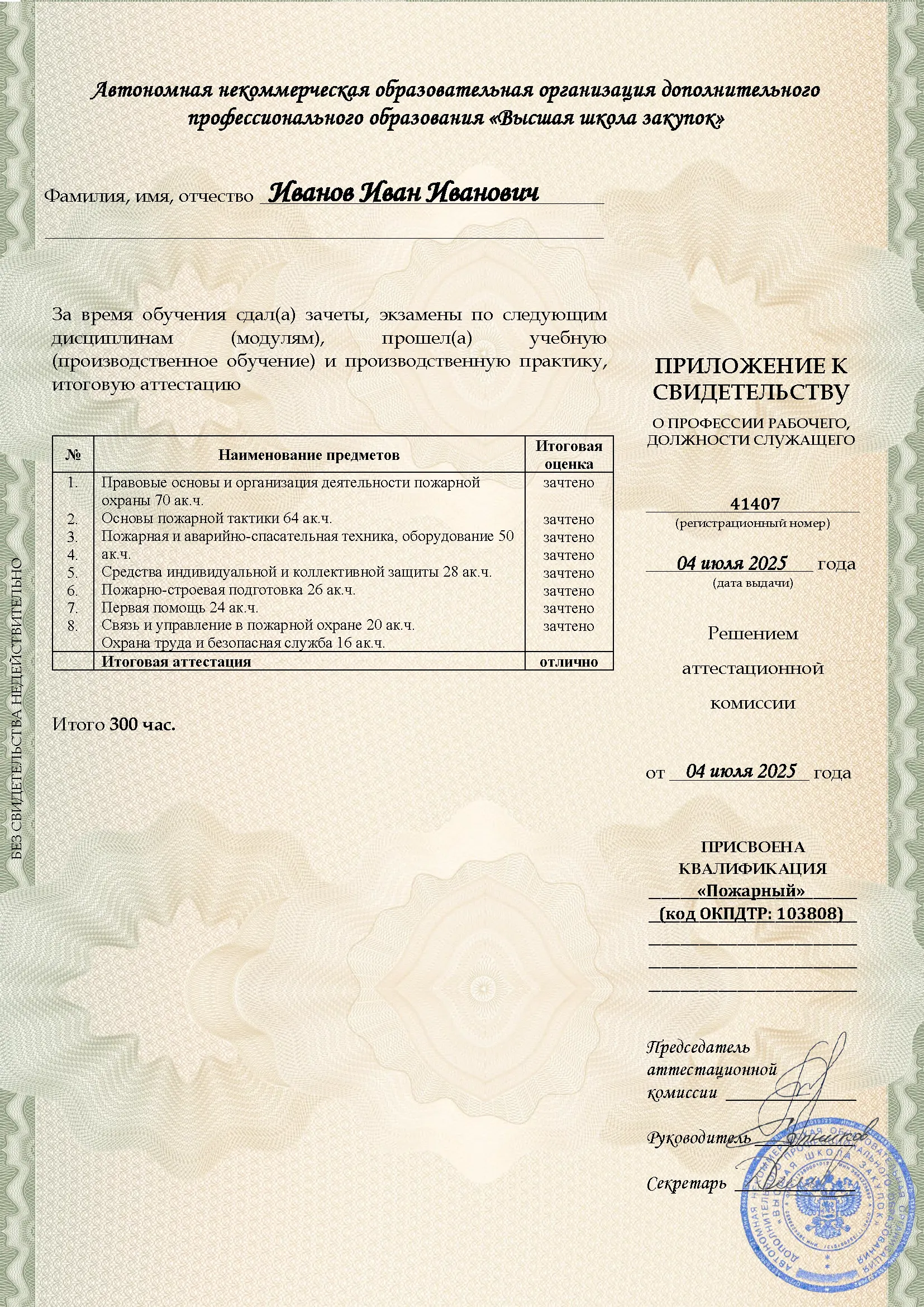 Профессиональное обучение, 300 академических часов, 8 модулей: законодательство и нормативные акты в области пожарной безопасности, тактика тушения пожаров и проведение аварийно-спасательных работ, устройство и использование пожарно-технического вооружения, оказание первой помощи. Онлайн-обучение в в Перми с итоговой аттестацией.