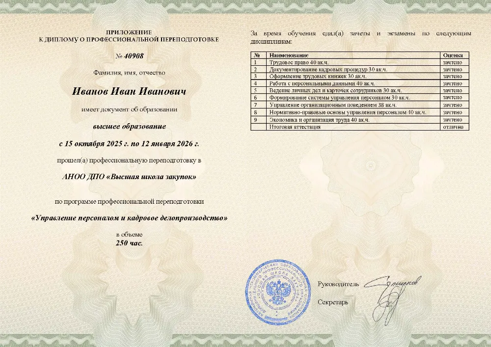 Это полноценная образовательная программа для получения дополнительной квалификации и освоения новой профессии. Для поступления также требуется высшее или среднее профессиональное образование (СПО). Итоговым документом является полноценный диплом о профессиональной переподготовке, который ценится на рынке труда. Программы являются наиболее объемными и начинаются от 250 академических часов, что обеспечивает глубокое погружение в специальность.