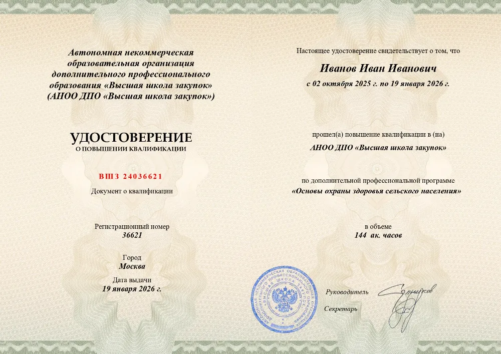 Курс повышения квалификации (144 часа) по основам охраны здоровья в сельской местности. Изучите правовые, организационные и экономические аспекты сельского здравоохранения, санитарно-эпидемиологическое обеспечение и управление качеством медицинской помощи. Онлайн-обучение в в Перми с итоговой аттестацией.