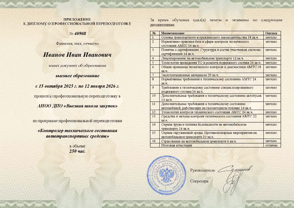 Профессиональная переподготовка, 250 академических часов, 7 модуля: нормативно-правовые основы и технологии контроля, охрана труда, экологии и требования к техническому состоянию транспортных средств. Онлайн-обучение в в Перми с итоговой аттестацией.